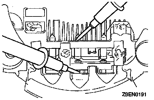 . If there is no continuity in both directions, diode is faulty and heatsink assembly must be replaced.