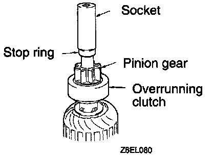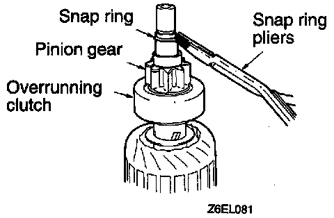 After removing the snap ring pliers and then remove the stop ring and the overrunning clutch.