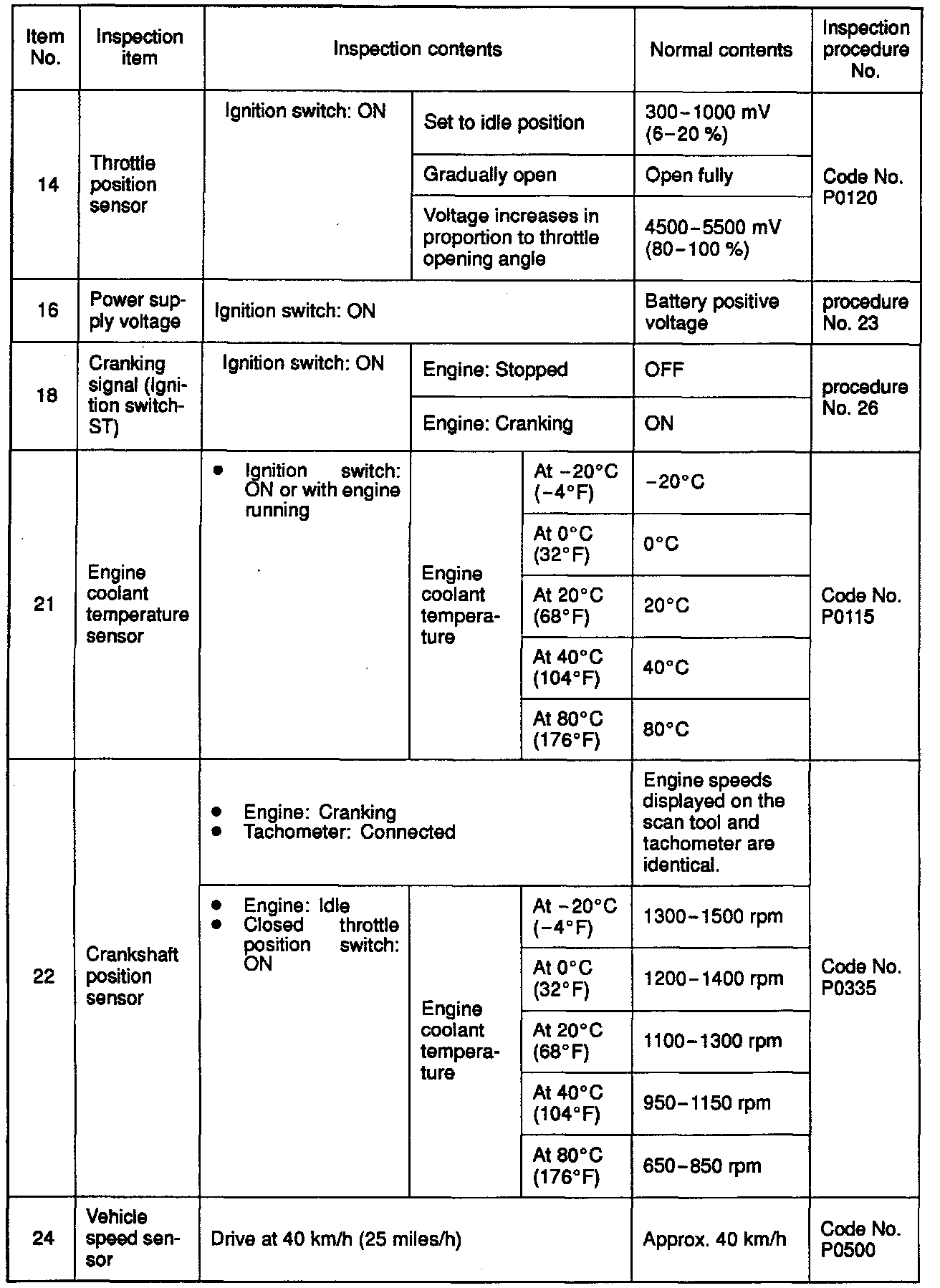 *2. The injector drive time represents the time when the cranking speed is at 250 RPM or below when the power supply voltage is 11V.