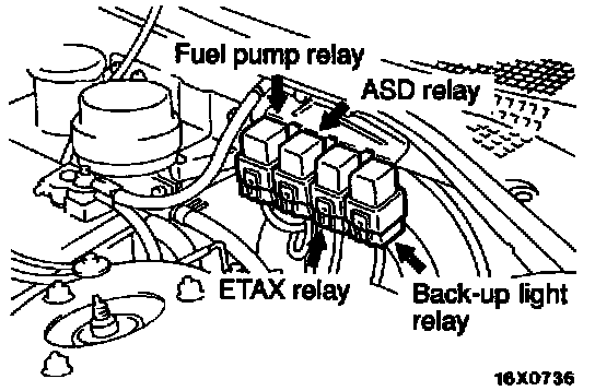 Fuel Pump, ASD, EATX, Back Up Light Relays:
