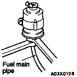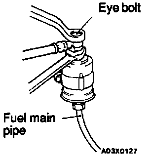 Hold the fuel filter with a spanner and loosen the flare nut. Then disconnect the fuel main pipe.
