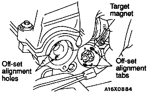 Align the tabs with the holes to install the target magnet to the camshaft.