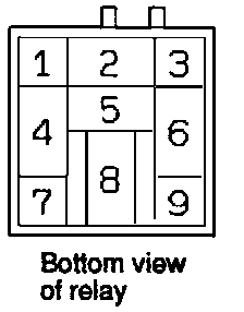 3. Use jumper leads to connect relay terminal No. 6 to the battery (+) terminal and terminal No. 4 to the battery (-) terminal. Check the continuity between relay terminal Nos. 2 - 8 while connecting and disconnecting the jumper lead at the battery (-) terminal.