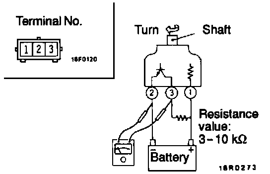 2. Turn the shaft of the vehicle speed sensor and check that there is voltage between terminals 2 - 3. (1 turn = 4 pulses)