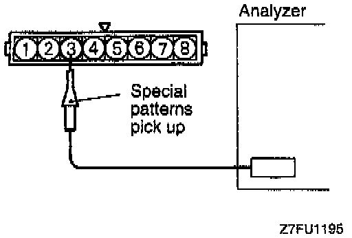 1. Connect the analyzer special patterns pickup to engine control module terminal No. 70.