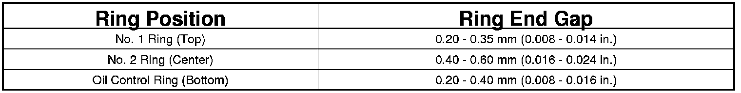 3. Using a feeler gauge (1), check the ring end gap. Replace any rings not within specification.