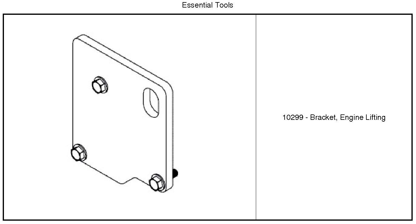 4. Install the (10299) (1) on the vacuum pump mounting surface with three bolts (2) provided with the engine lifting bracket. Tighten the bolts to 20 Nm (15 ft. lbs.).