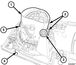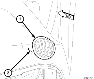2. Engage the two retaining tabs (1 and 3) that secure the top of the outlet to the instrument panel. Make sure the retaining tabs are fully engaged.