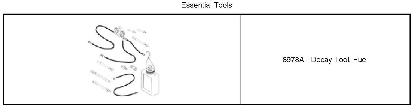 As an alternative procedure, the electric fuel pump may be activated allowing the tank to be drained at the fuel rail connection. Refer to the diagnostic tool for fuel pump activation procedures. Before disconnecting the fuel line at the fuel rail, release the fuel pressure Service and Repair. Install the appropriate Fuel Line Adapters / Fitting from the Gas and Diesel Fuel Pressure/Decay Tester (8978A). Route the opposite end of this hose to an approved gasoline draining station. Activate the fuel pump and drain the tank until empty.