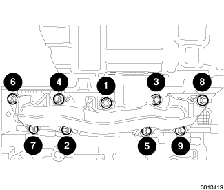 1) Tighten to 15 Nm (133 in. lbs.) in order from 1 to 9.