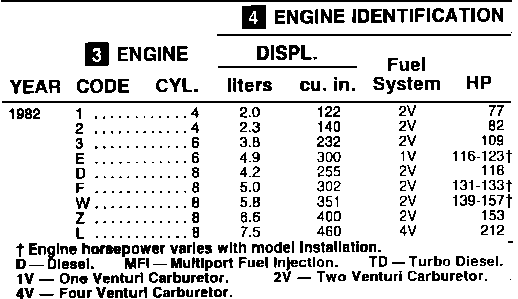 (4) ENGINE IDENTIFICATION: On the line where the engine code appears, read to the right to identify the engine.