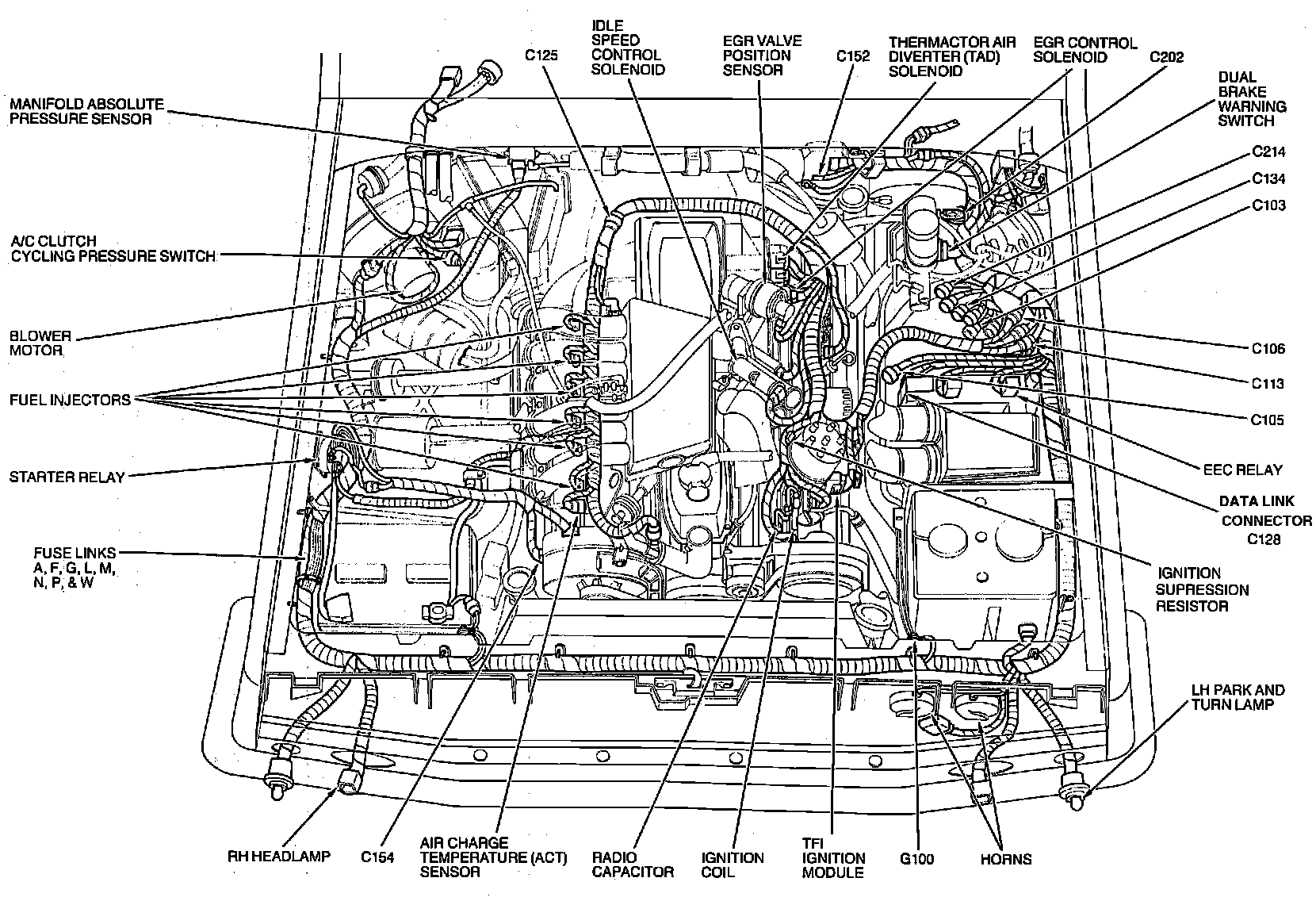 The VIP Self Test Data Link Connector (C128) is located on the left side of the engine compartment, behind the air cleaner assembly.