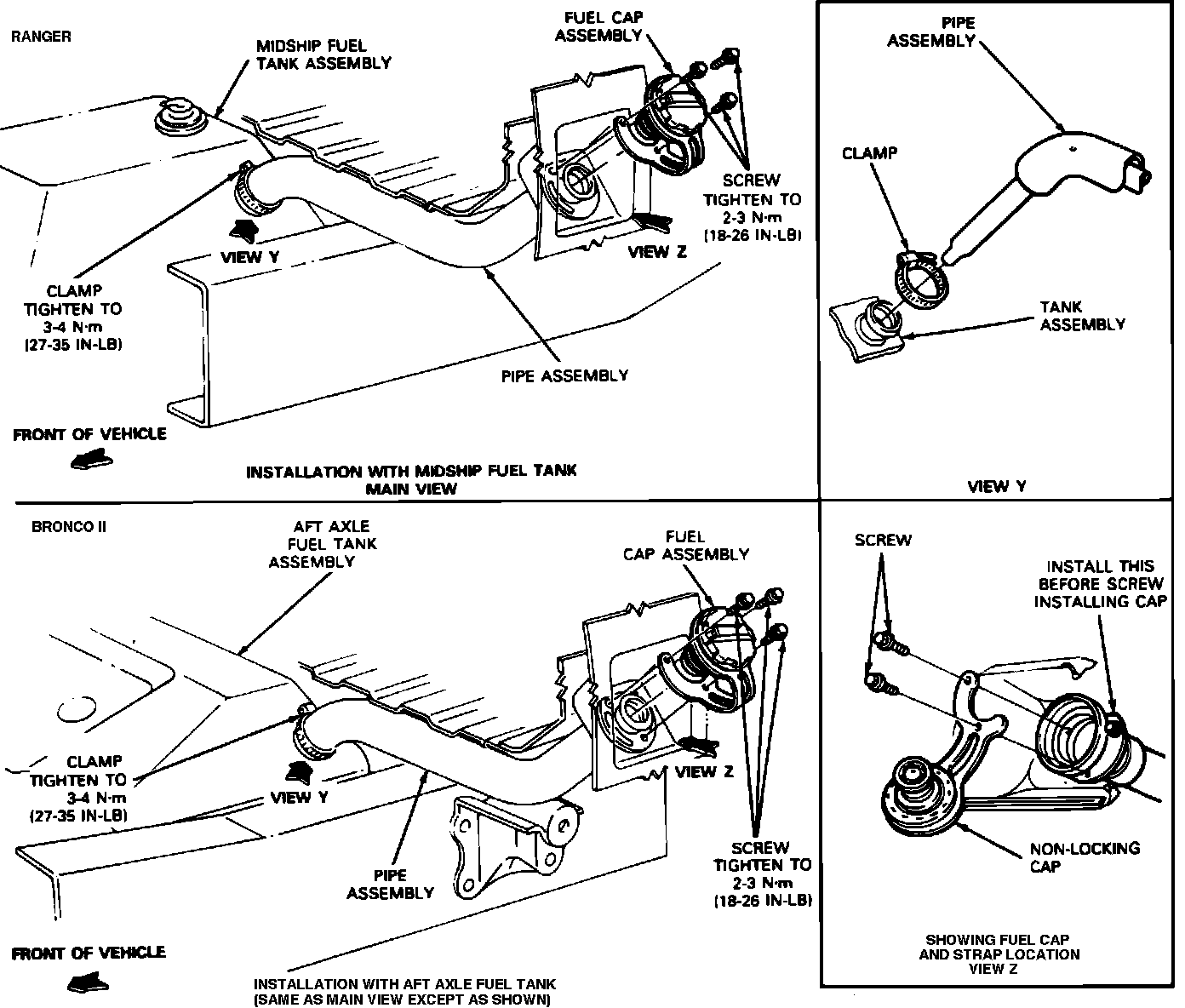 4. Detach fuel filler system from tank spud and remove through frame rail/body side void.