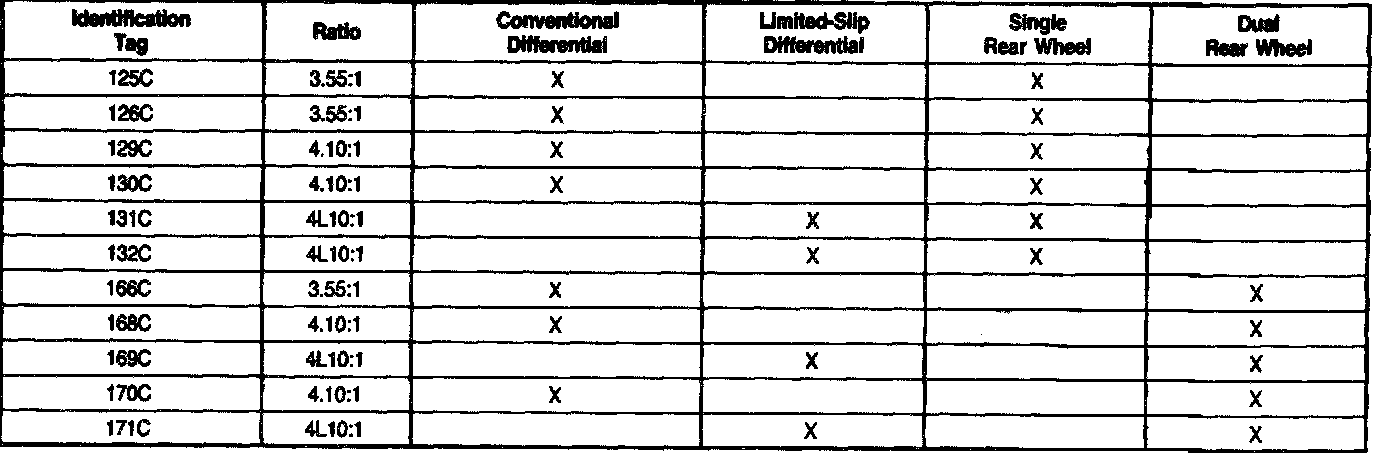 F-Series Truck Chassis Cab Full Floating Axle Identification Chart: