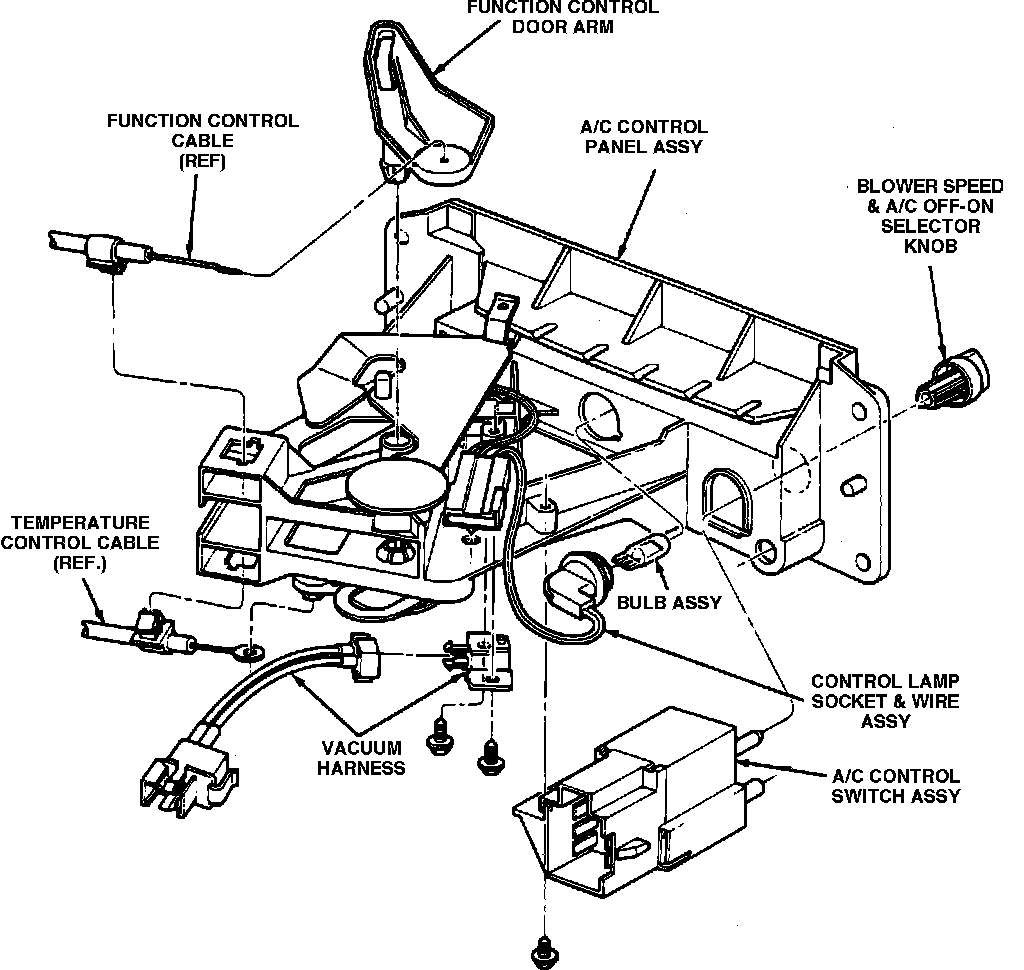 5. Pull control assembly through opening far enough to allow removal of electrical connectors from blower switch and control lamp.