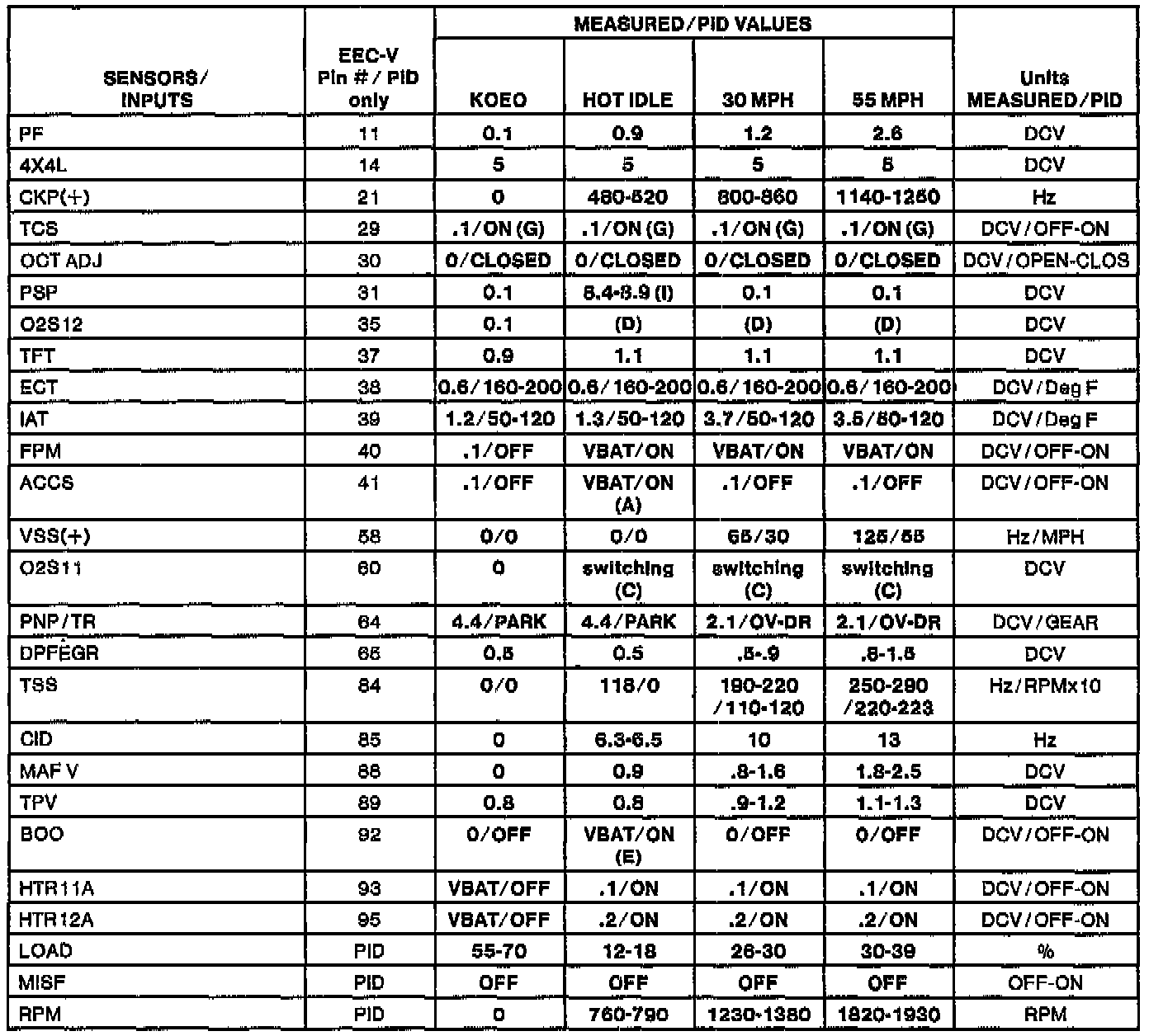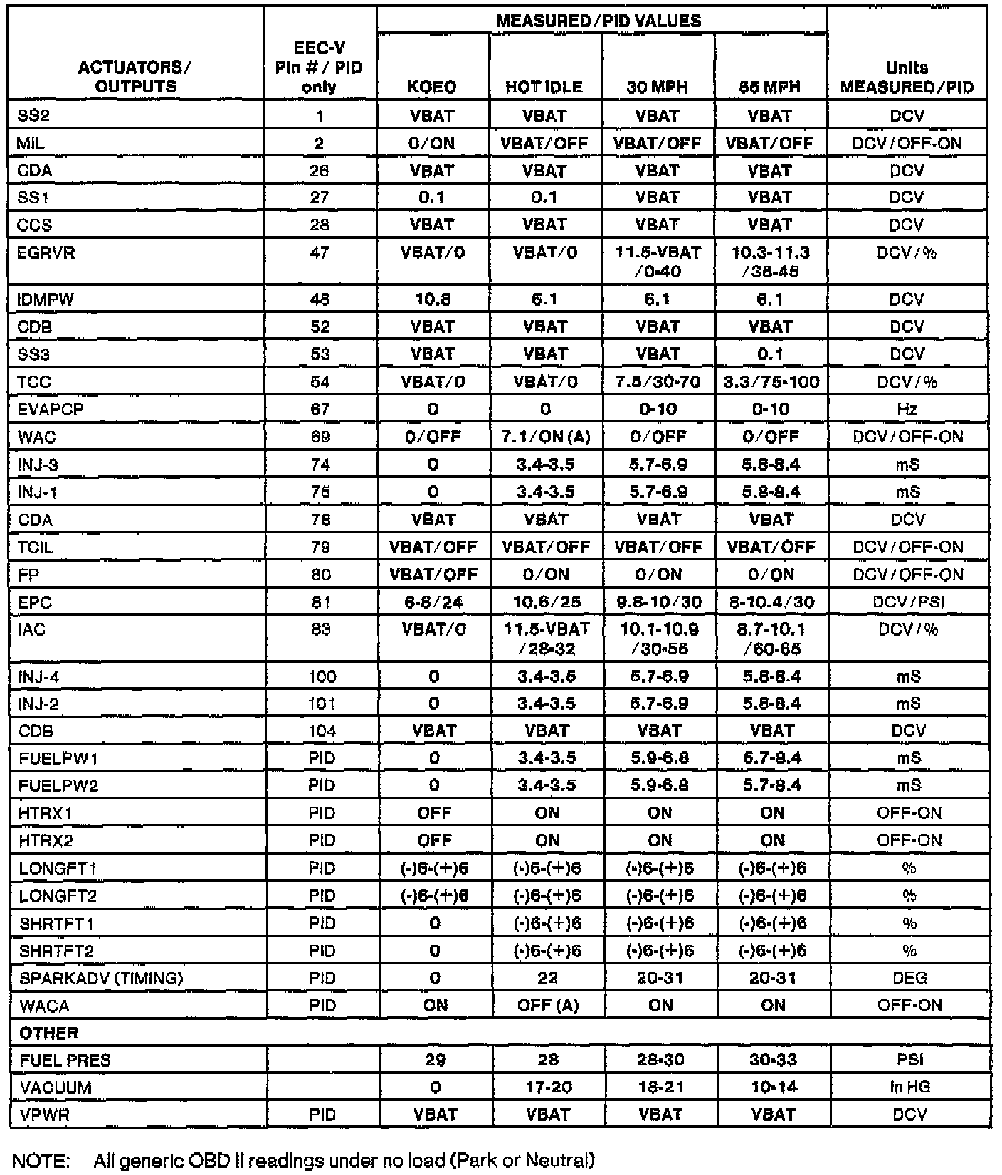H Values shown are commanded by the PCM and may not be actual.