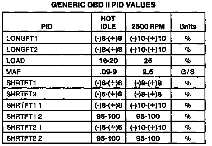 Generic OBDII Parameter Identification Values