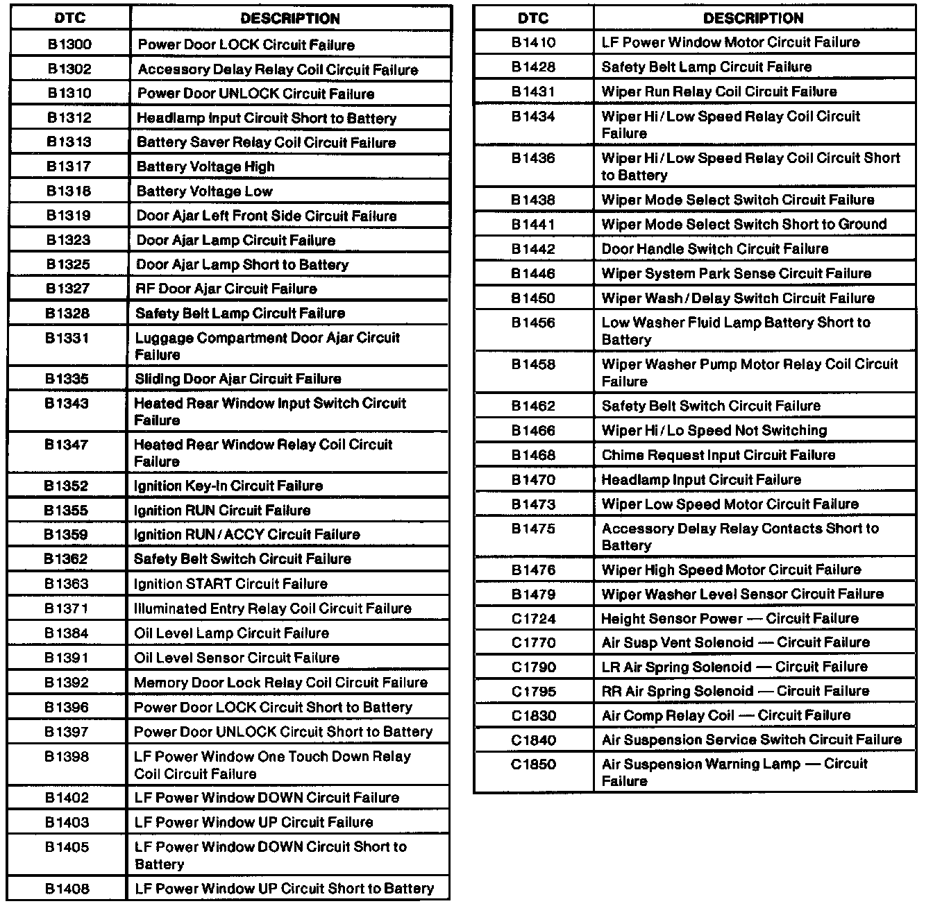 Diagnostic Trouble Code Descriptions