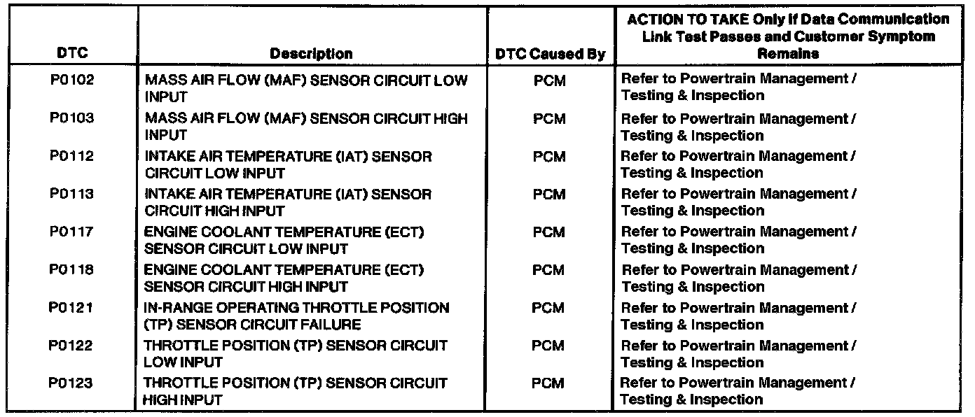 DTCs P0102 - P0123