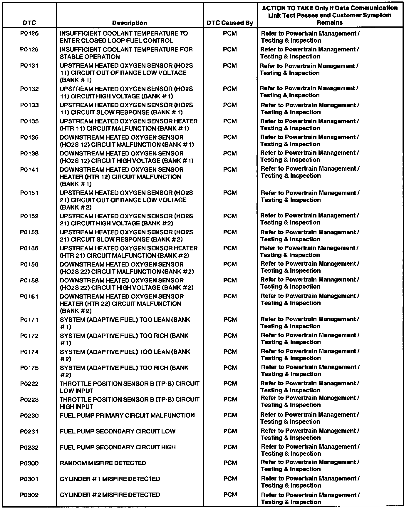 DTCs P0125 - P0302