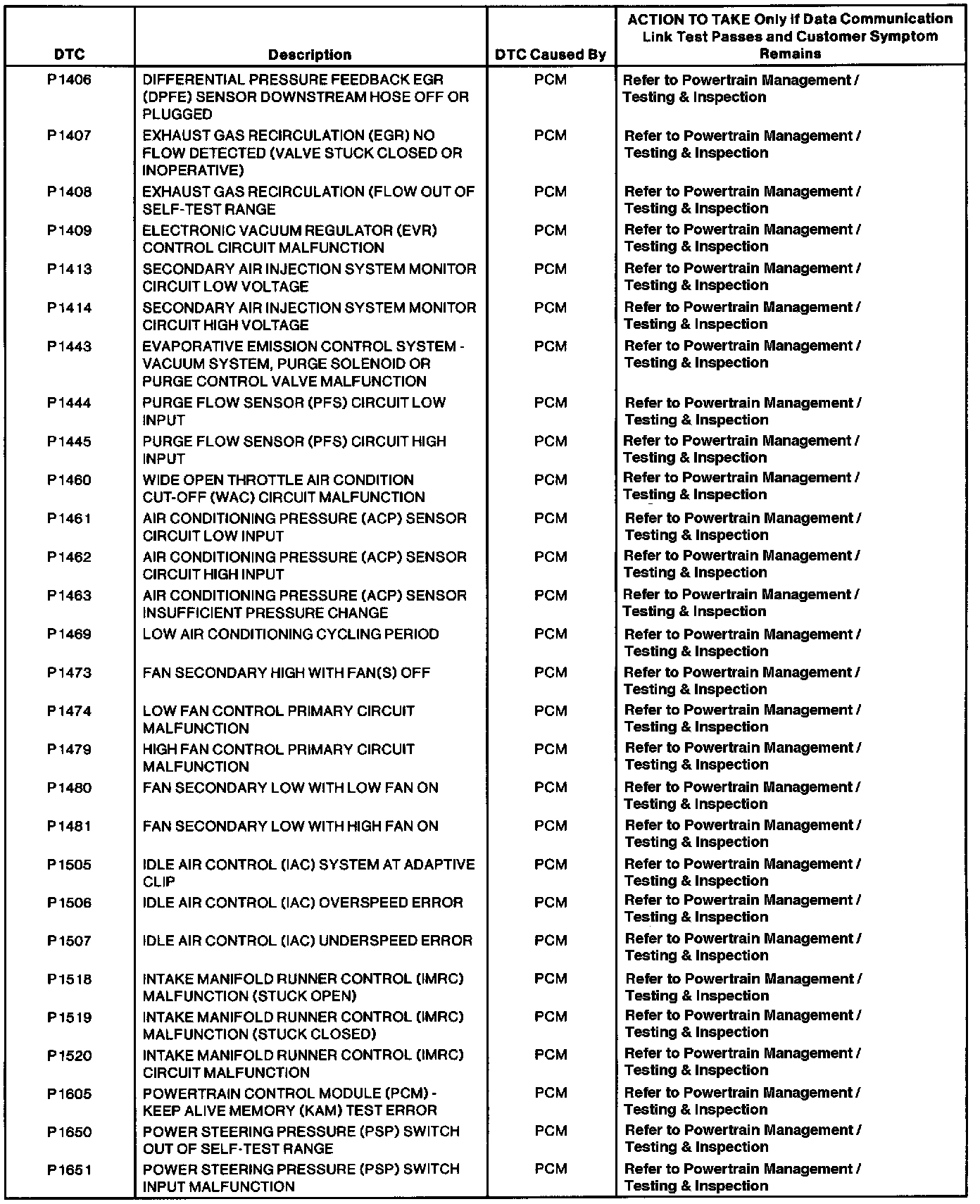 DTCs P1406 - P1651