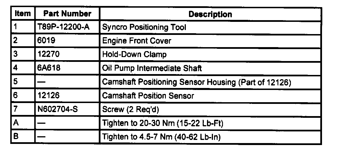 1. CAUTION: If the replacement camshaft position sensor housing does not contain a plastic locator cover tool, a special service tool must be obtained prior to installation of the replacement camshaft position sensor. Failure to follow this procedure will result in improper camshaft position sensor alignment. This will result in the ignition system and fuel system being out of time with the engine, possibly causing engine damage.