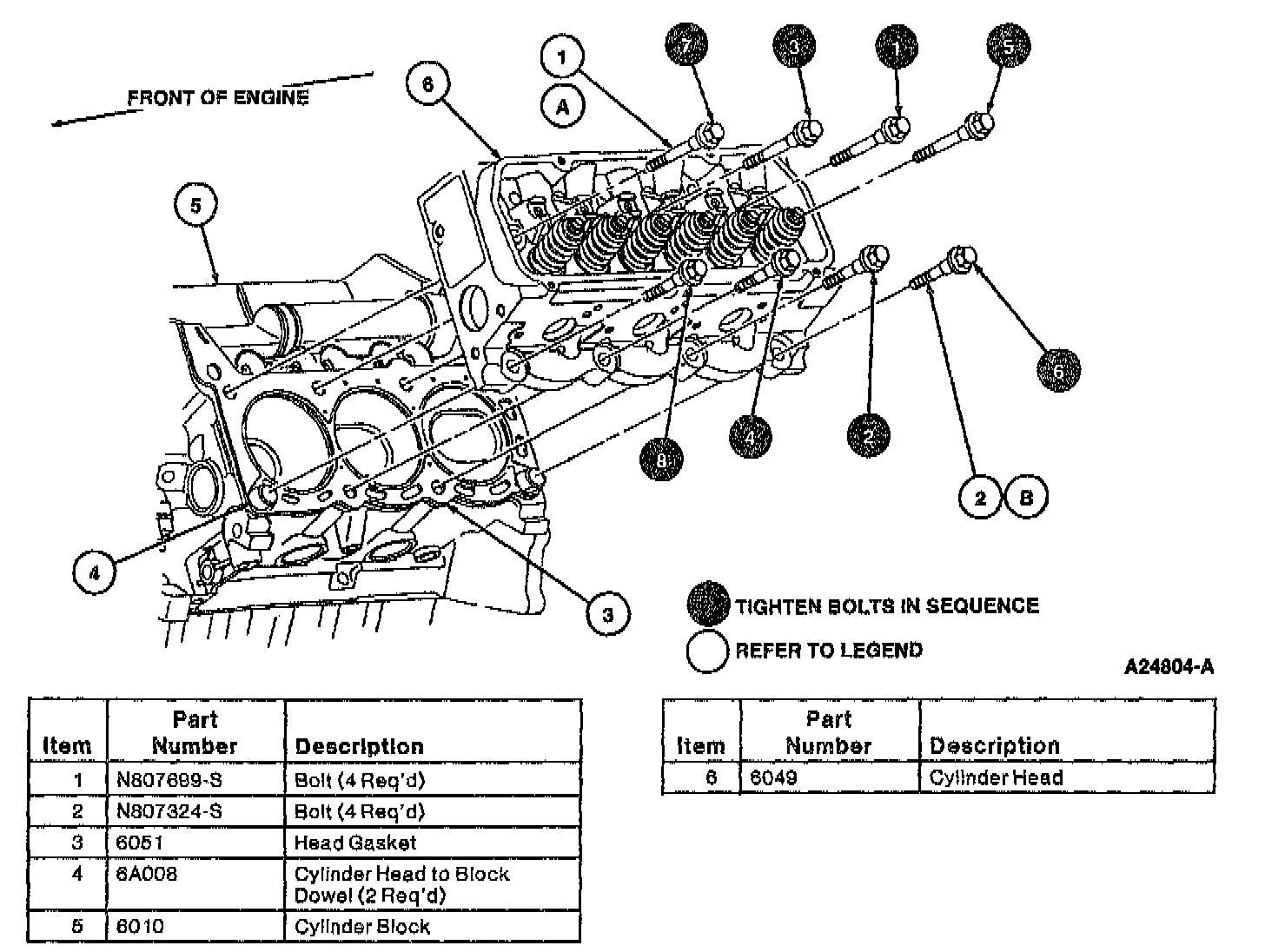 1. Tighten cylinder head retaining bolts in sequence as follows: