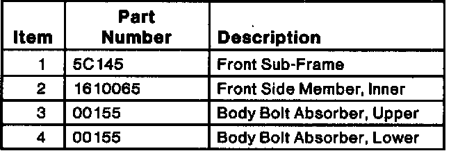 20. Remove four sub-frame to body retaining bolts and lower body bolt absorbers (00155).