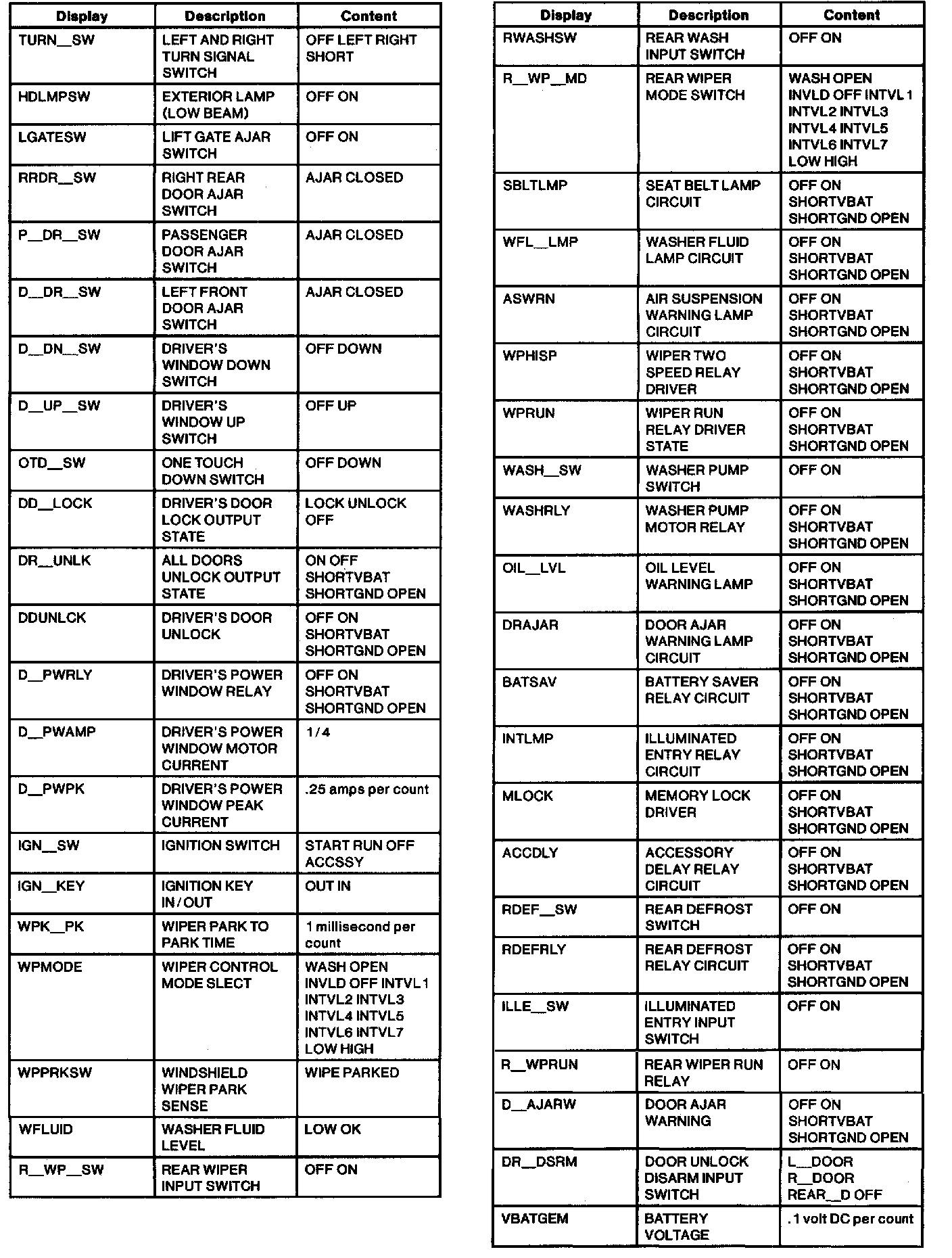 Diagnostic Trouble Code Descriptions