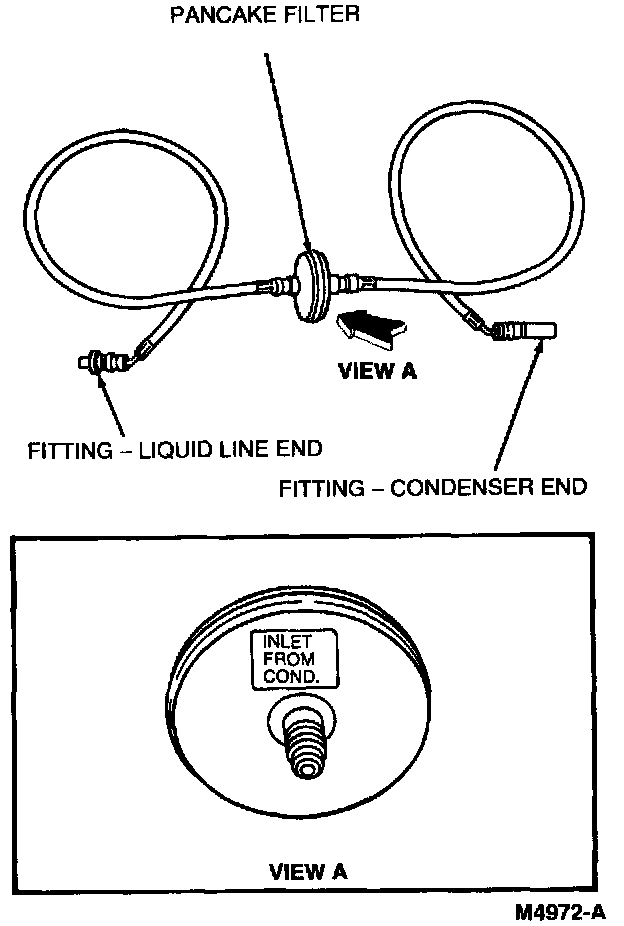 9. Install the suction filter in the suction hose close to the compressor. These filters have two grooves in the end tubes to accommodate O-ring seals.