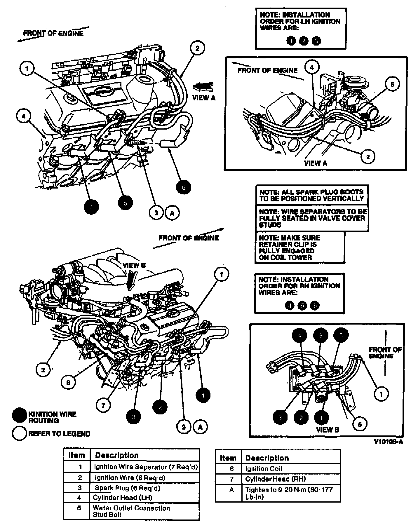 CAUTION: Proper installation of ignition wires is critical to vehicle operation. If any ignition wire is not properly installed on spark plug or ignition coil, both spark plugs connected to that ignition coil may not operate properly under load.