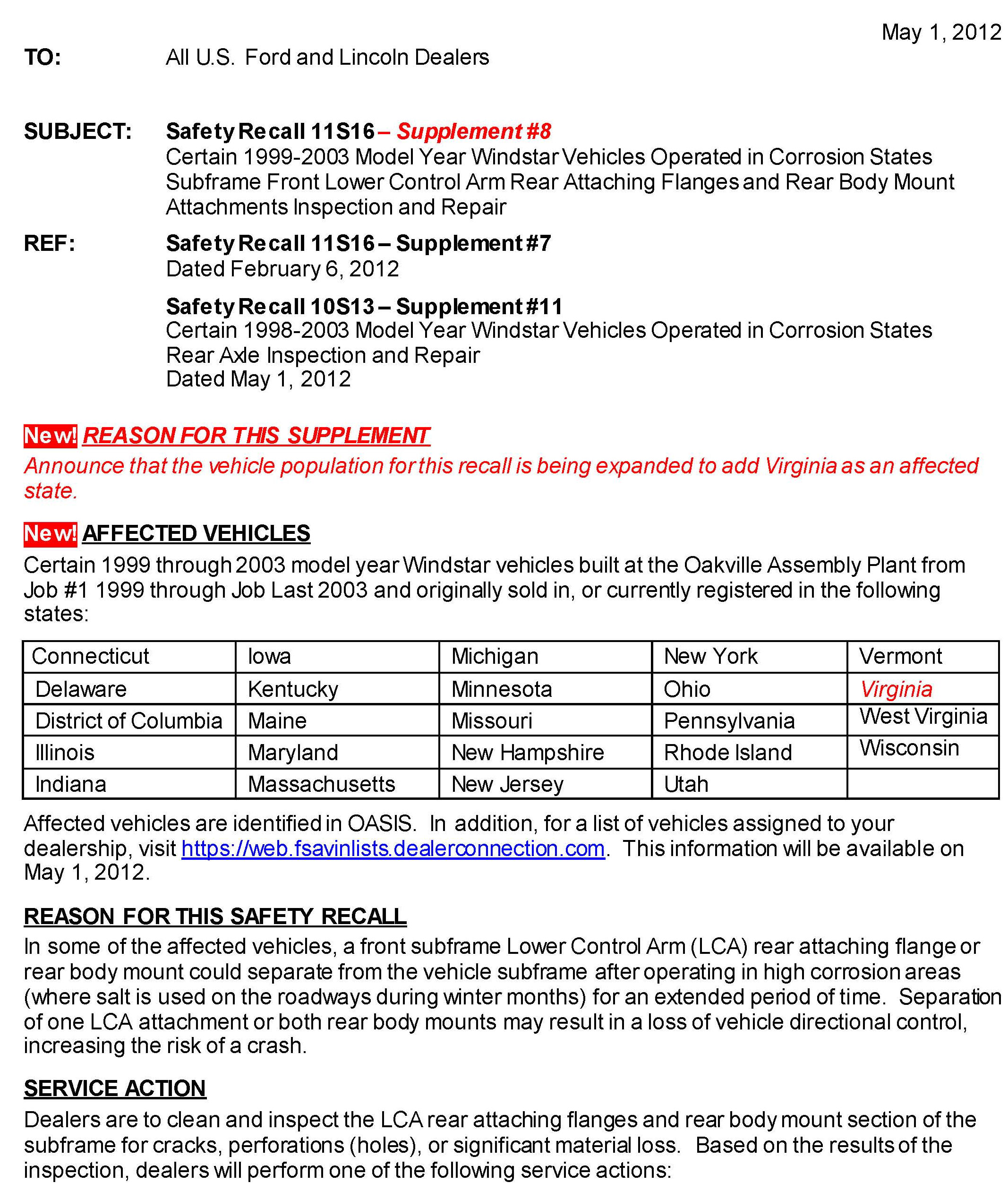 Recall - Rear Subframe/Control Arm Mount/Body Mount Repair