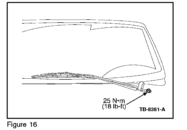 21. Install wiper pivot arms. (Figure 16)