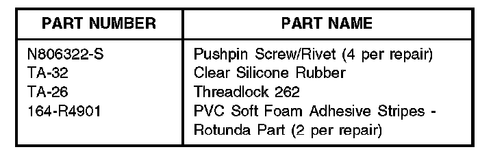 8. Obtain two (2) PVC soft foam adhesive stripes (164-R4901) from the Rotunda Squeak And Rattle Kit (164-R4900).