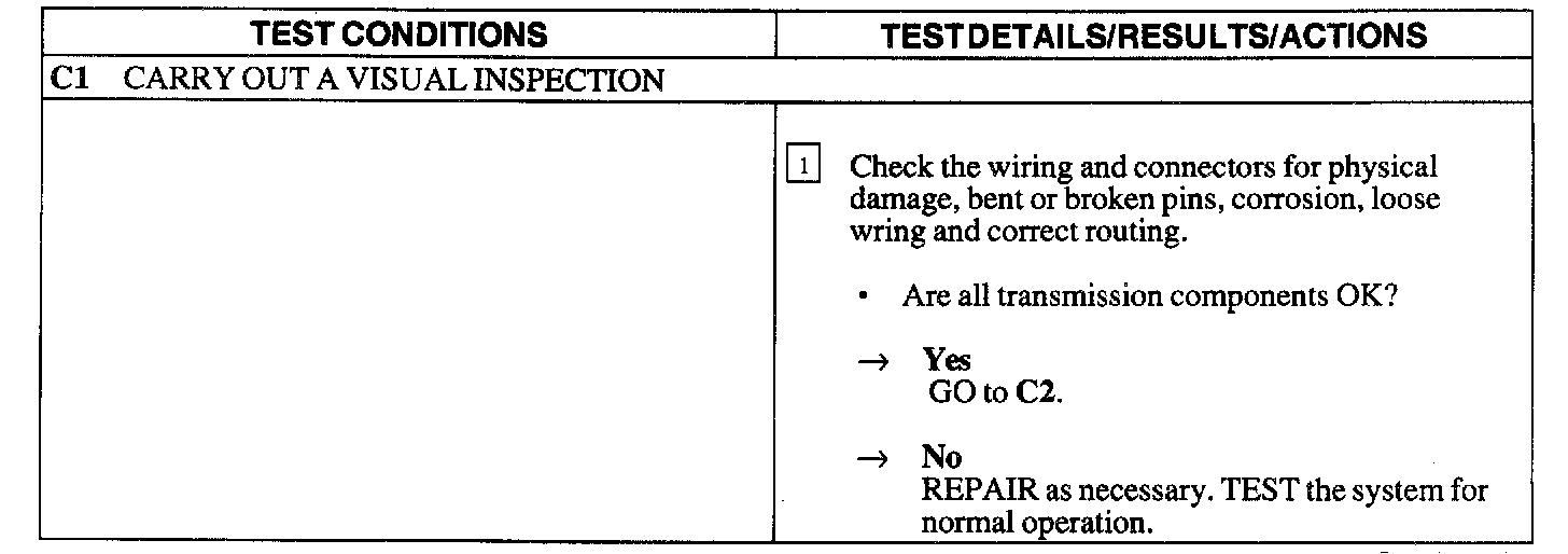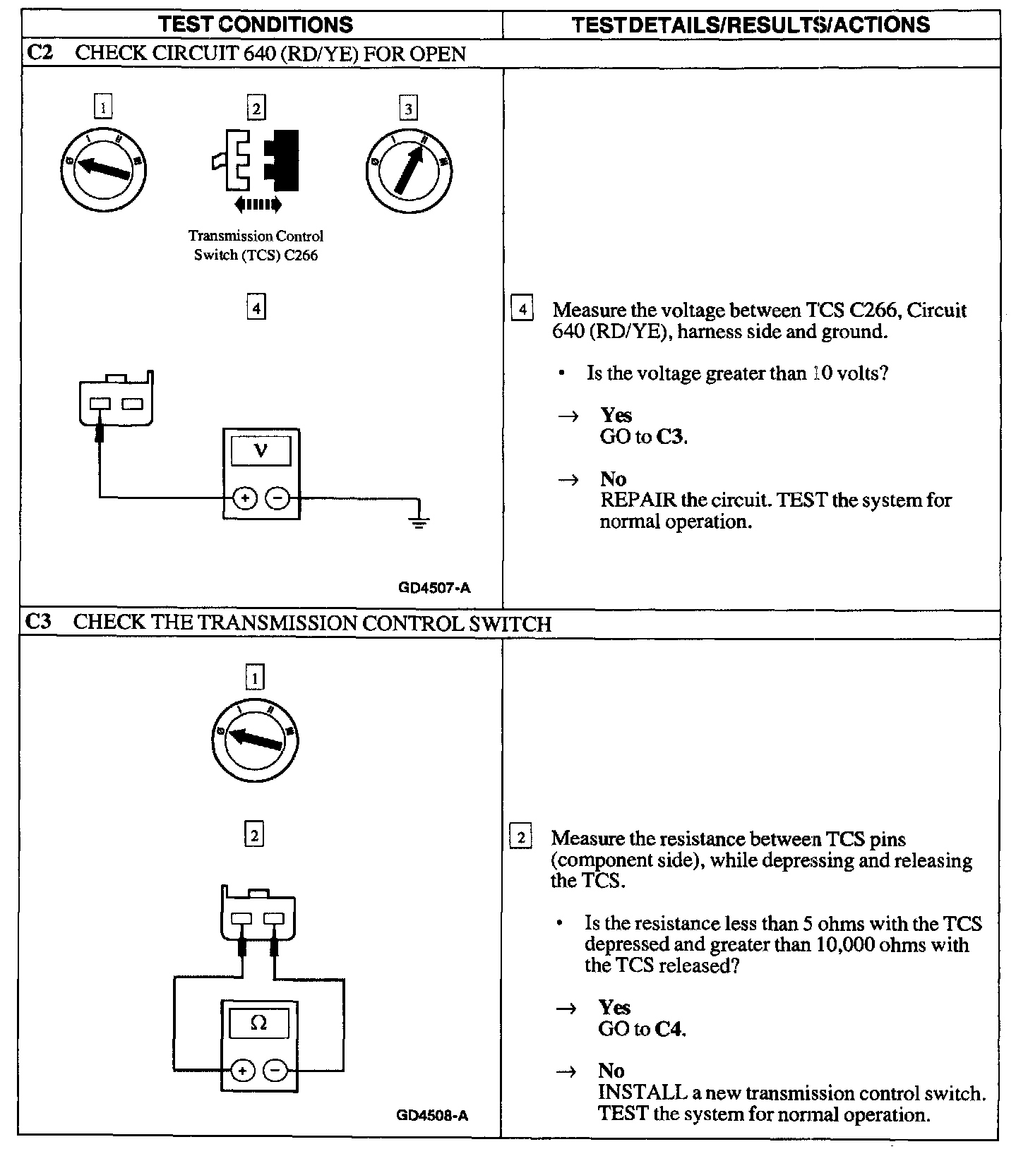 Pinpoint Test C: TRANSMISSION CONTROL SWITCH (TCS) NOT OPERATING CORRECTLY.