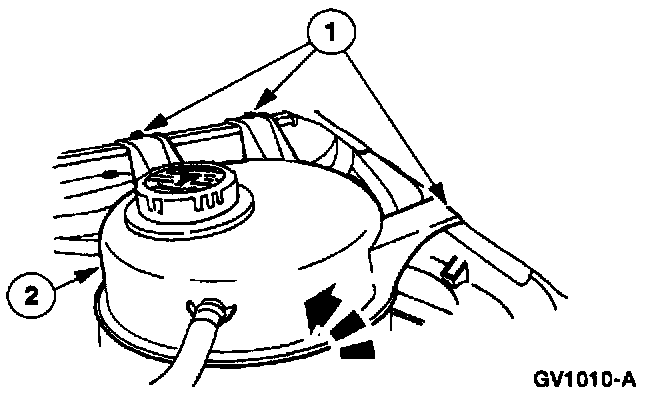 2 Position the radiator coolant recovery reservoir aside.