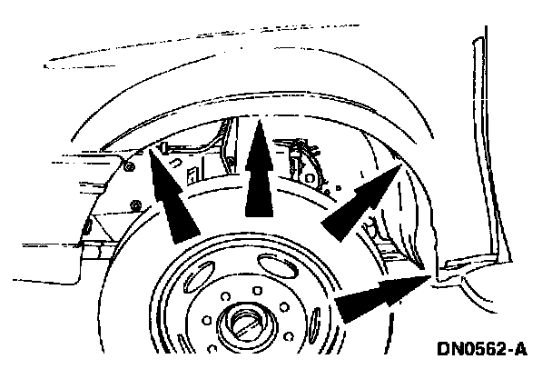 7. Remove the bolts securing the lower rear of the front fender.