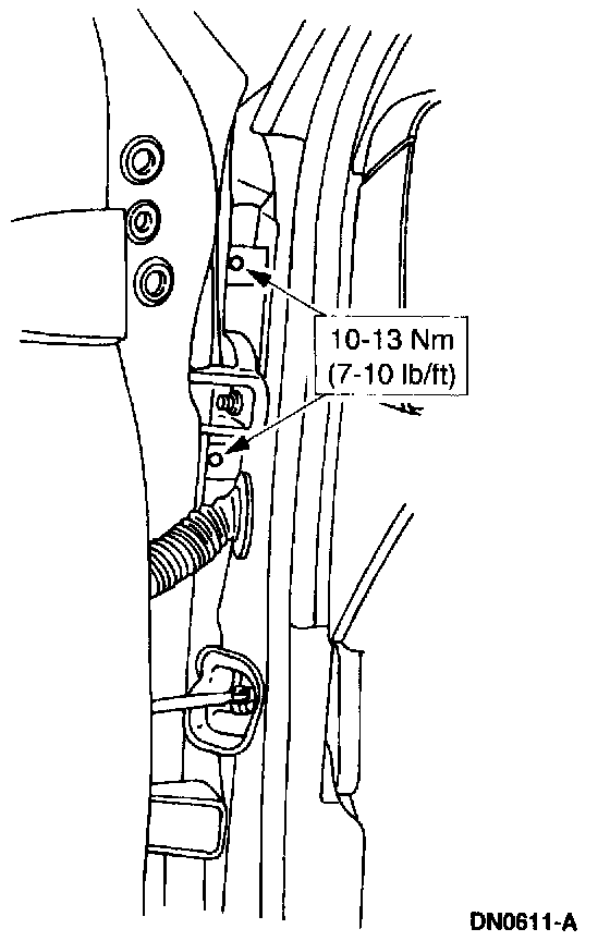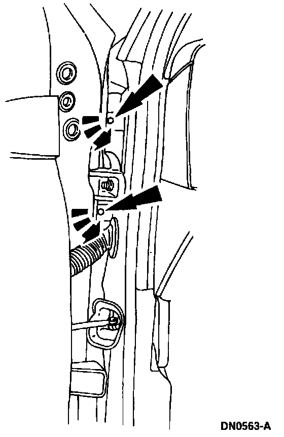 10. Open the door, then remove the fender retaining bolts.
