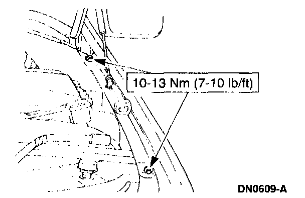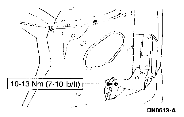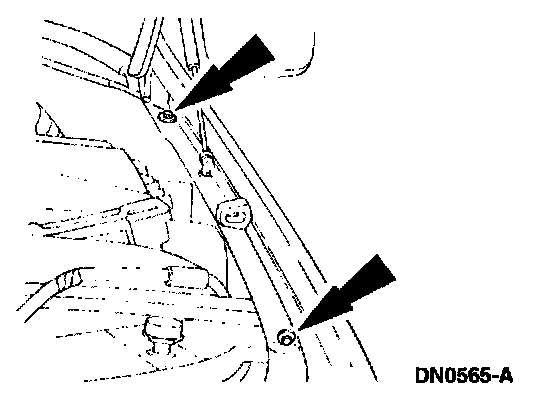 8. Remove the fender-to-radiator grille opening support retaining bolts.