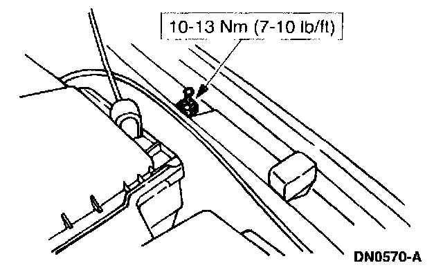 12. Remove the hood support bolt.