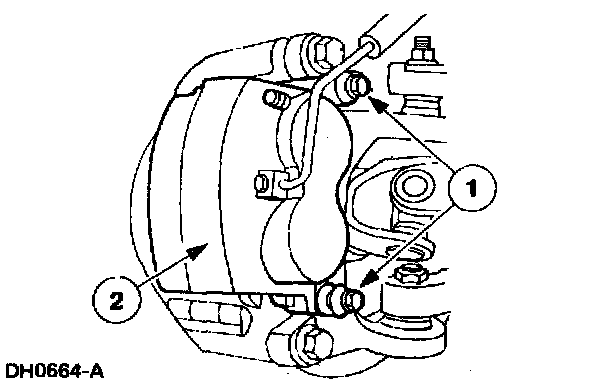 1 Remove two disc brake caliper pin bolts.