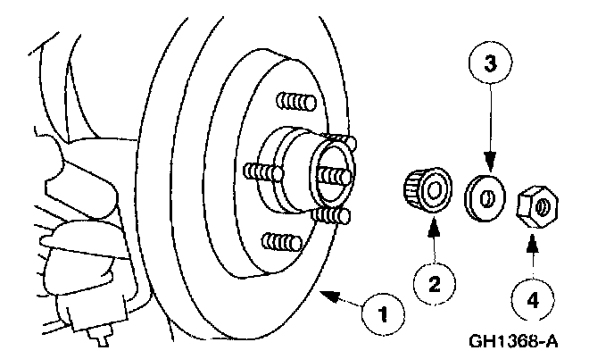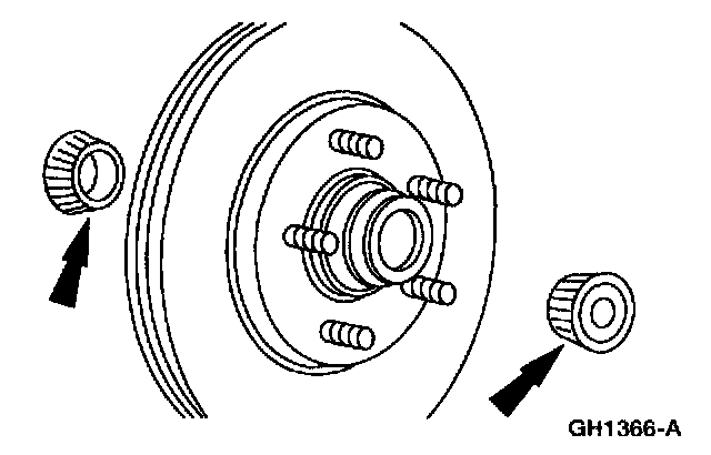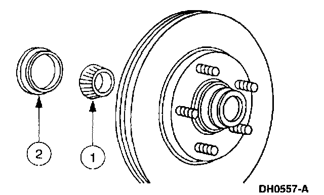 1. Thoroughly clean and inspect the front wheel bearings and the disc brake hub and rotor.
