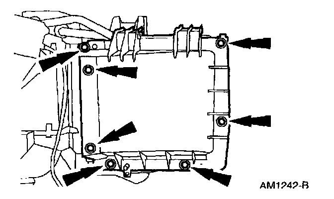 CAUTION: The heater core cover must be raised vertically before removal to avoid damage to the heater core housing.