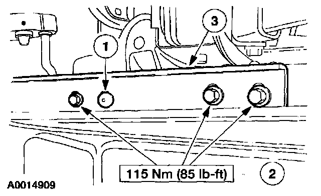 3. CAUTION: New shear bolts with the same part number must be installed. Do not use fasteners of lesser quality or substitute design. Torque values must be used as specified during installation to ensure correct retention of the trailer hitch.