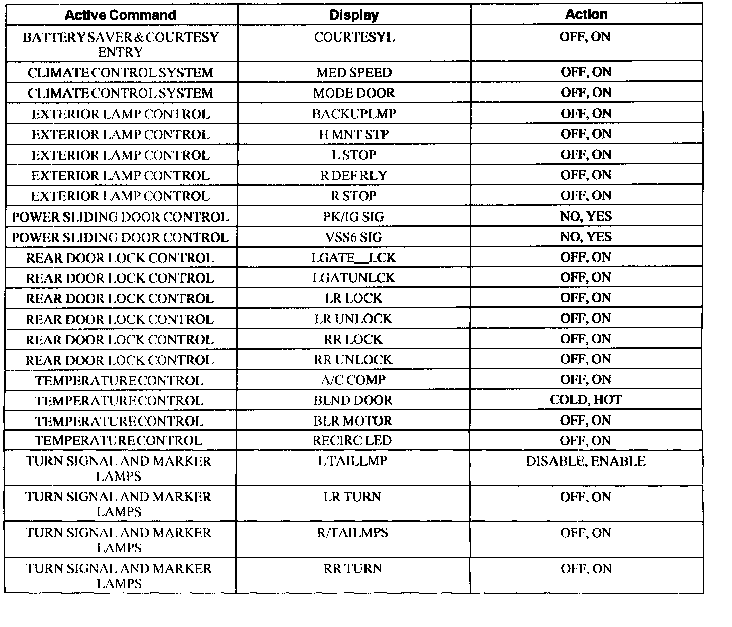 Rear Electronic Module Active Command Index