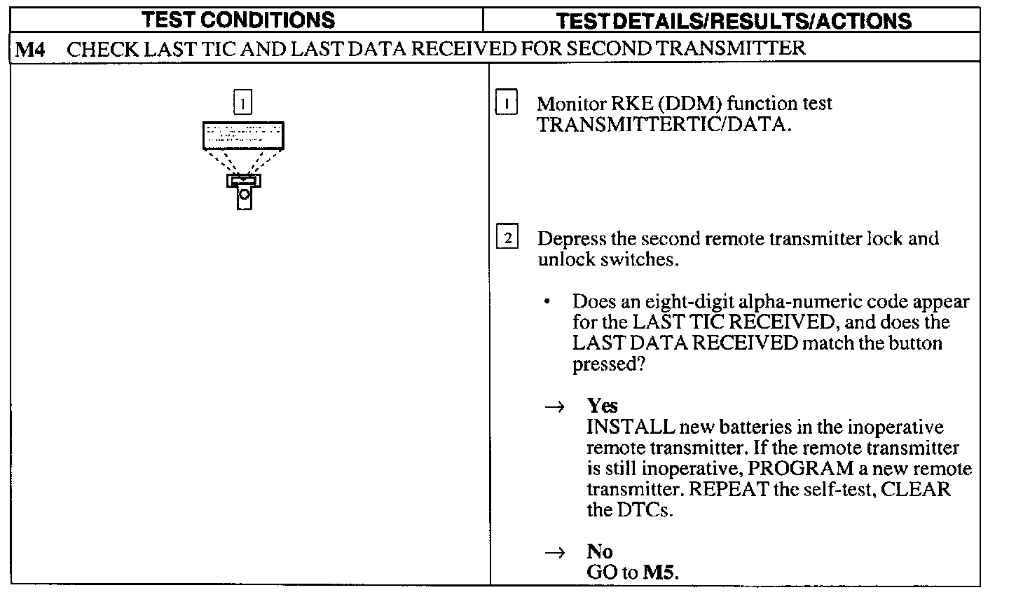 Test M: Doors Do Not Lock/Unlock Using the Remote Transmitter