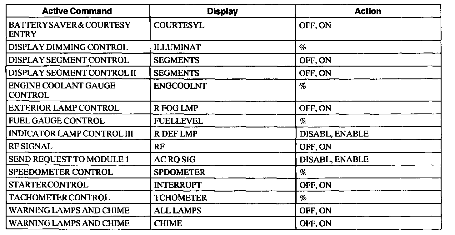 Instrument Cluster Active Command Index