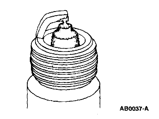 - Check for wet, black deposits on the insulator shell bore electrodes, caused by excessive oil entering the combustion chamber through worn rings and pistons, excessive valve-to-guide clearance or worn or loose bearings.