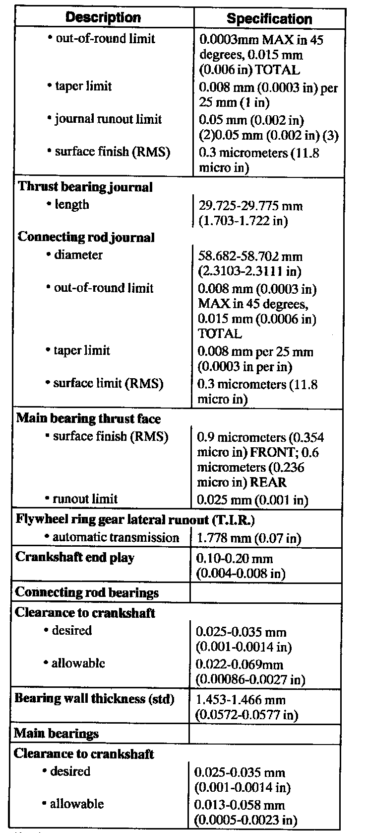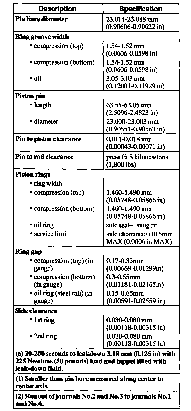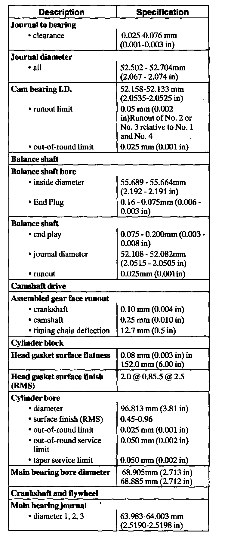 Engine General Specifications