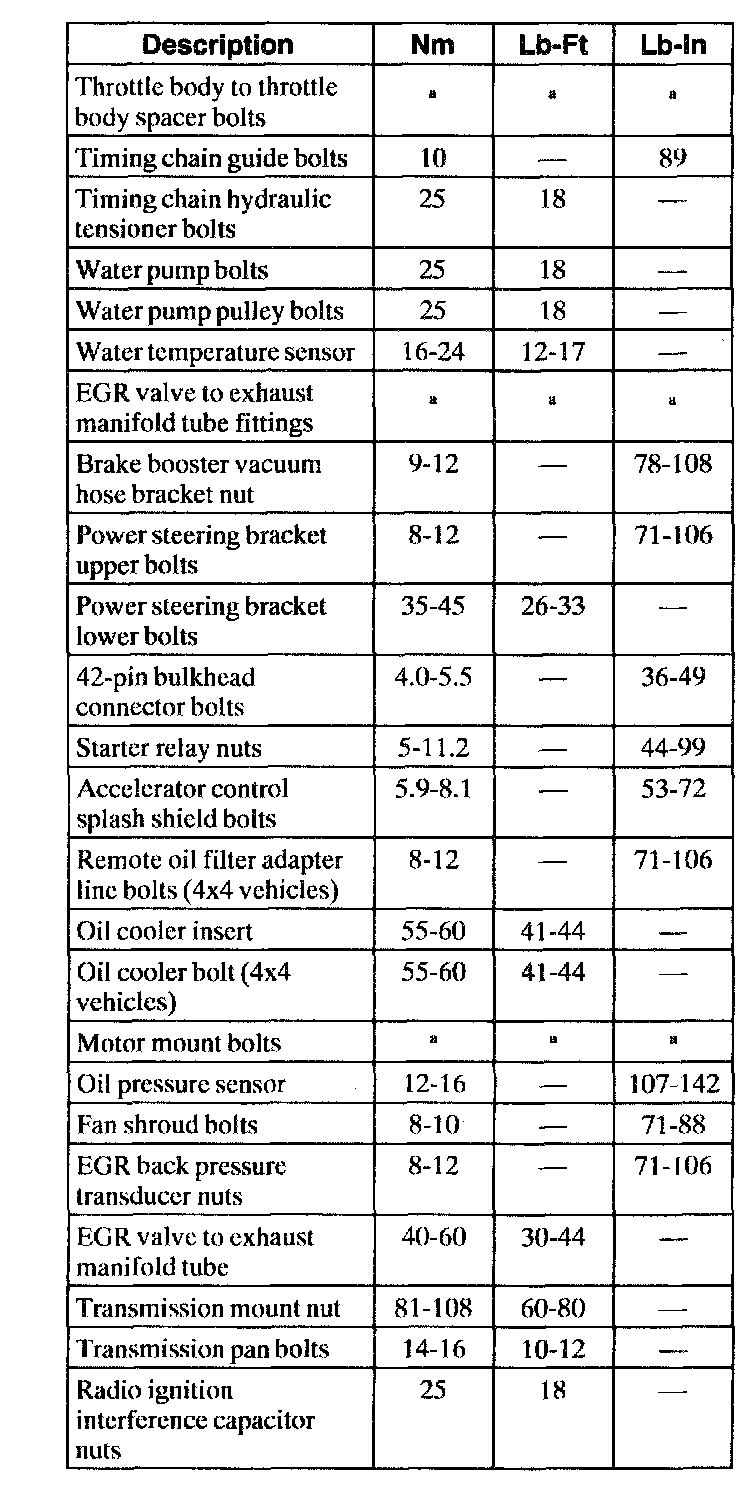 Torque Specifications